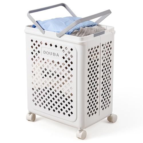 60L Laundry Basket Plastic Washing Baskets for Laundry Rolling Laundry Hamper Foldable Laundry Basket with Handle and Wheels Clothes Storage for Laundry Room,Bathroom,Bedroom,Dorm