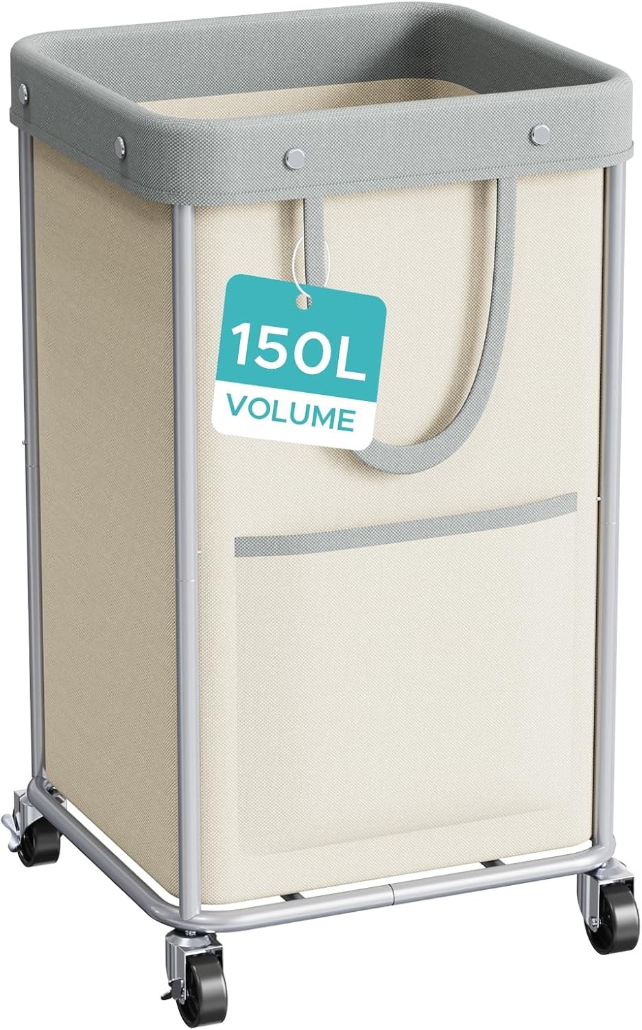 STORAGE MANIAC Commercial Laundry Hamper with Heavy Duty Steel Frame, 160 L Industrial Laundry Basket Cart with Wheels for Hotel, Home, Laundry Room, 17.72''L x 17.72''W x 30.91''H, Medium Beige