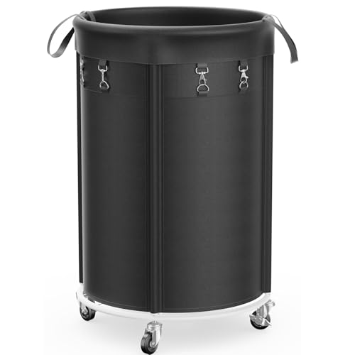 150L Laundry Basket with Wheels, Large Rolling Laundry Hamper, Round Laundry Cart with Removable Bag and Steel Frame, Dirty Cloth Hamper for Home, Closet, Dorm, Bathroom, Laundry Room, Black