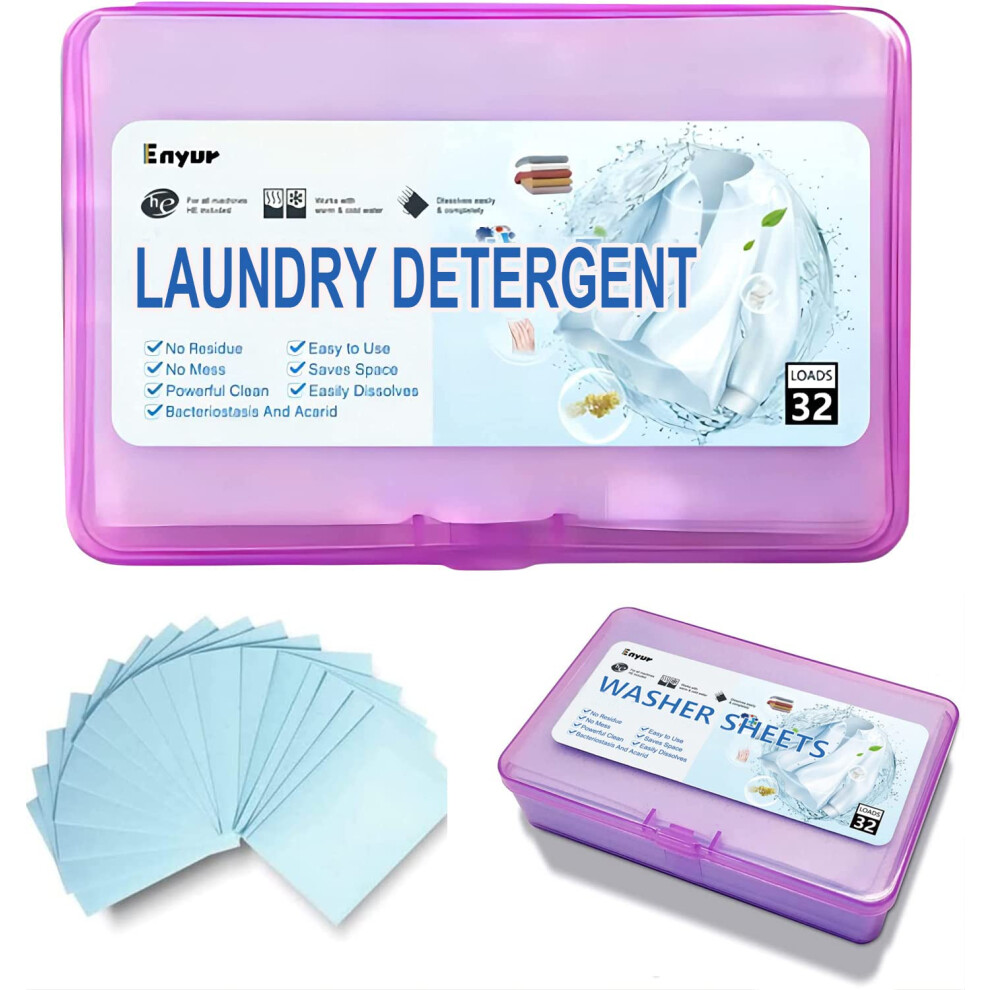 Enyur Laundry Detergent Sheets Travel Laundry Detergent NO-LEAK Laundry Soap Liquidless Laundry Sheets 32 Loads Fresh Scent Great for College Camping
