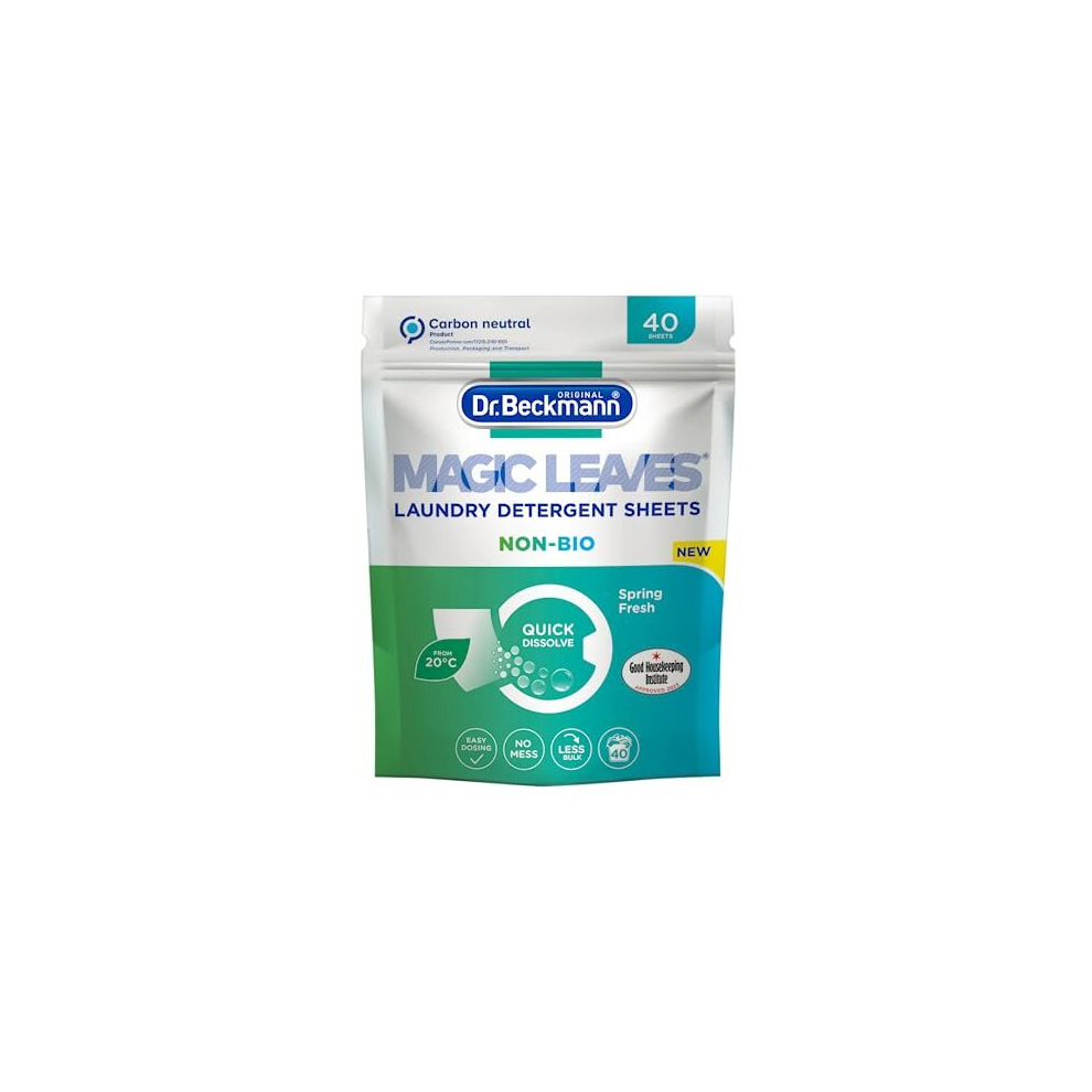 Dr. Beckmann MAGIC LEAVES NON-BIO Laundry Detergent Sheets (Model 2004) â 40 Pre-Dosed, Water-Soluble, Climate Neutral, 20â60C