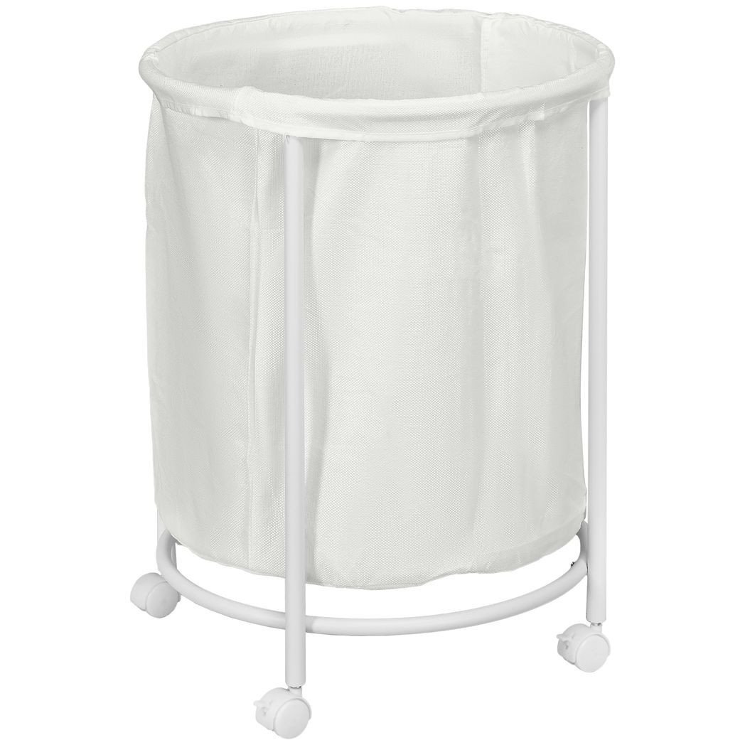 HOMCOM 100L Round Laundry Hamper with Wheels for Bedroom Bathroom Cream White