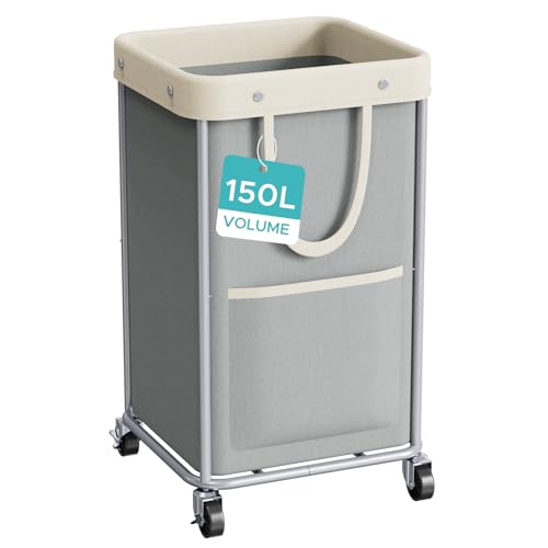 JYPS Laundry Basket 150L, Large Laundry Hamper with Wheels and Handle, Removable Washing Baskets& 2 Side Bags, Waterproof Oxford Fabric Laundry Bin for Dirty Clothes Storage, Bedroom,Laundry Room,Grey