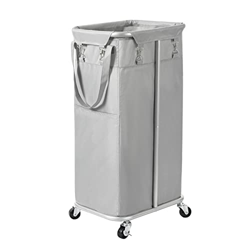 Professional 2-Tier Rolling Laundry Sorter, Metal Laundry Cart with Wheels & Removable Baskets - Dirty Clothes Hamper & Storage Organiser for Home Use