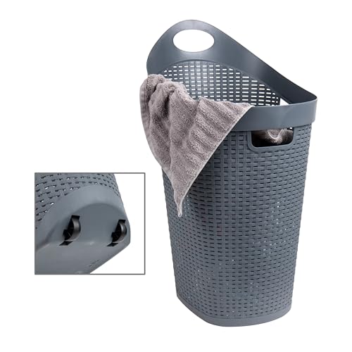 Mind Reader 60L Rolling Laundry Hamper, Clothes Basket, Wheels, Wicker Style, Plastic, 19.5"L x 14.75"W x 29.25"H, Grey