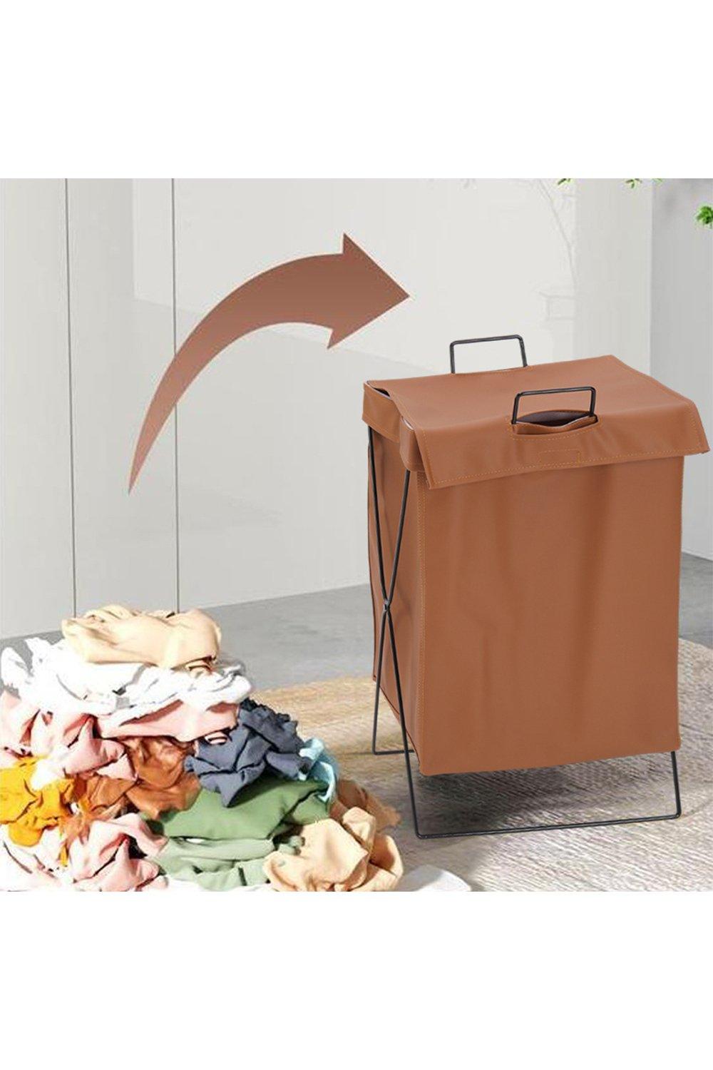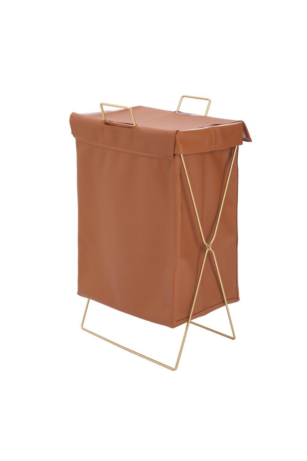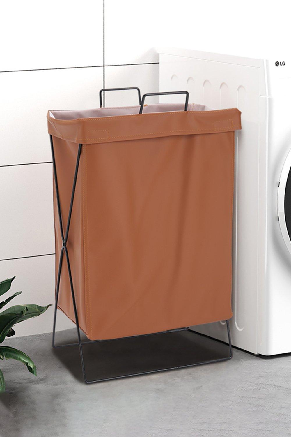 Collapsible PU Leather Laundry Hamper with Metal Frame