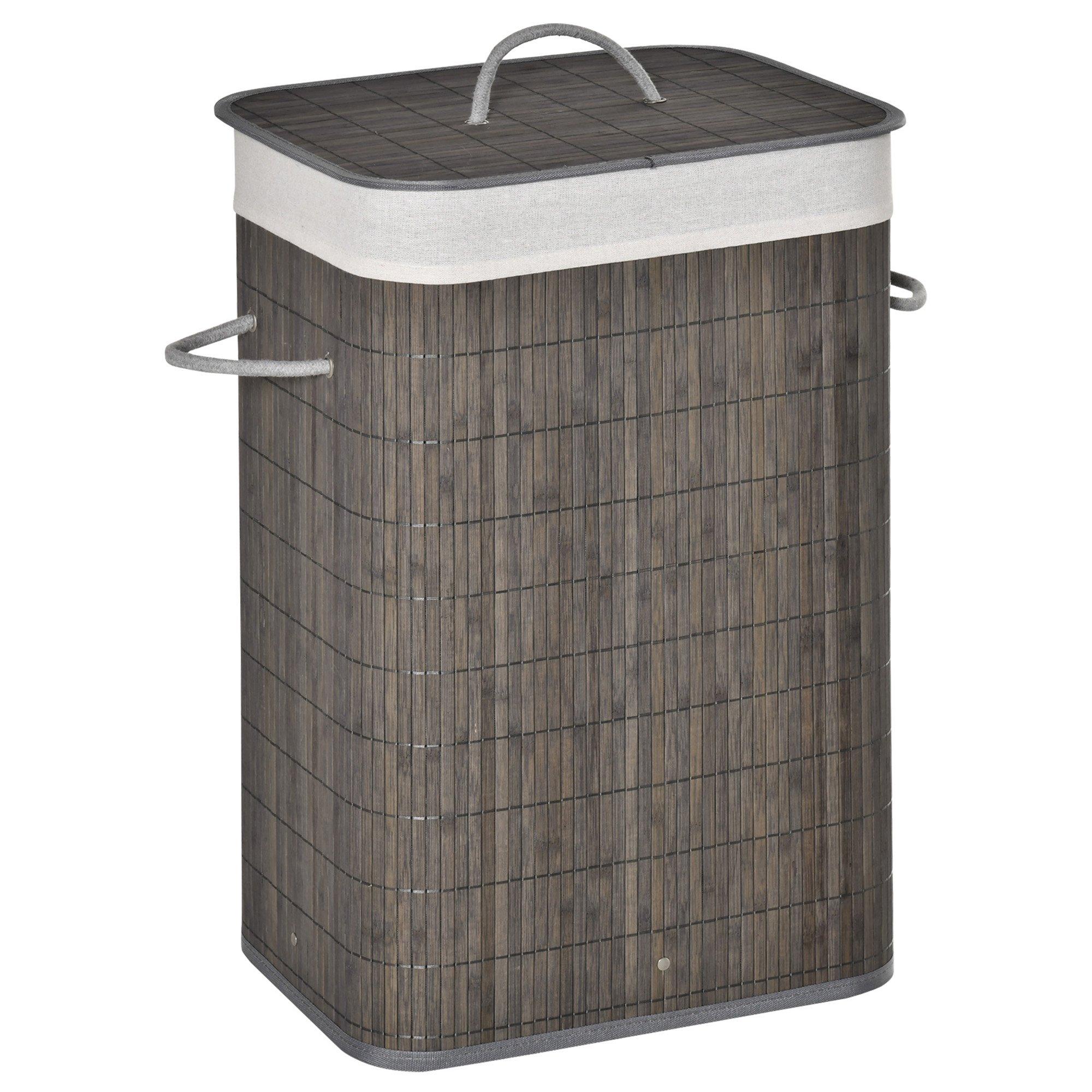 Bamboo Laundry Hamper Basket Oblong Charcoal