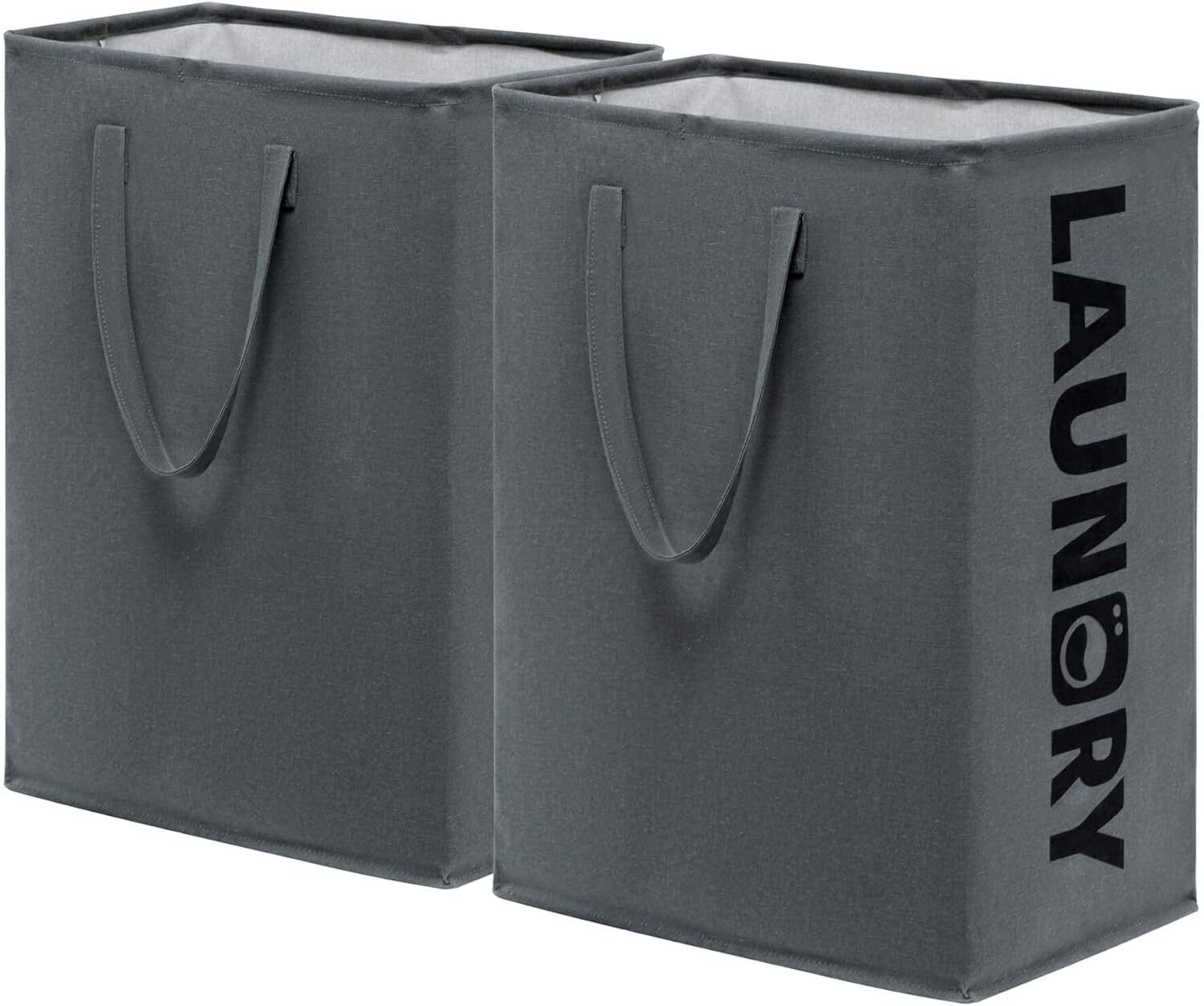 Large Laundry Basket 2-Pack 75L Tall Hampers Collapsible Washing Baskets for Laundry in the Dorm and Family, Foldable Laundry Hampers for Clothes, Toys, Towels, Grey Laundry Bin