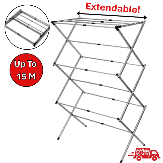 3 Tier Extendable Clothes Airer|Metal|Laundry Drying Rack|Indoor|Outdoor Drier