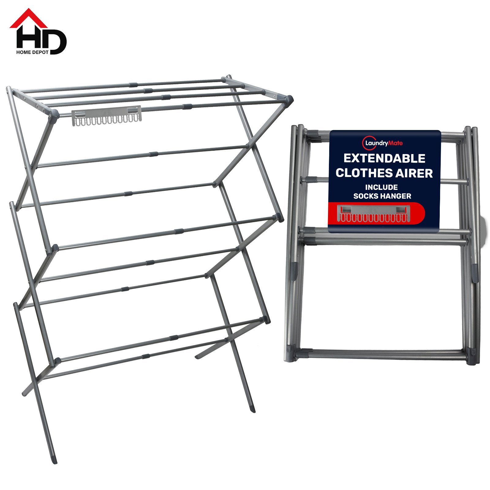 Extendable Clothes Airer with Sock Clip 18M Foldable Laundry Clothes Drying Rack