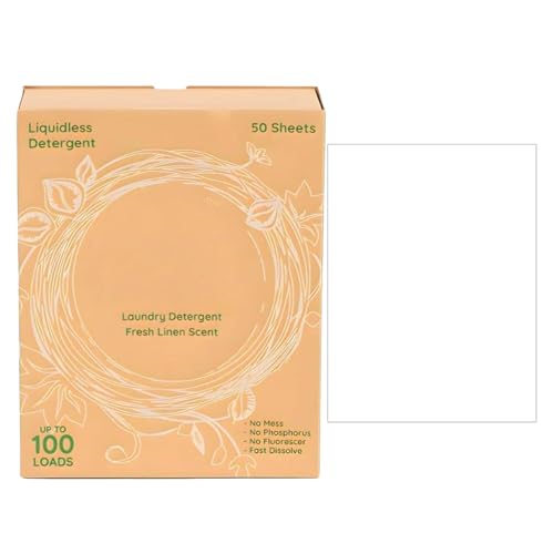 Liquidless Laundry Detergent Sheets, With Fresh Linen Scent, 50tablets, Water-Soluble Laundry Strips, Stain Removing Strips, Fast Dissolving Formula, For Sensitive Skin Travel College Dorm Apartment