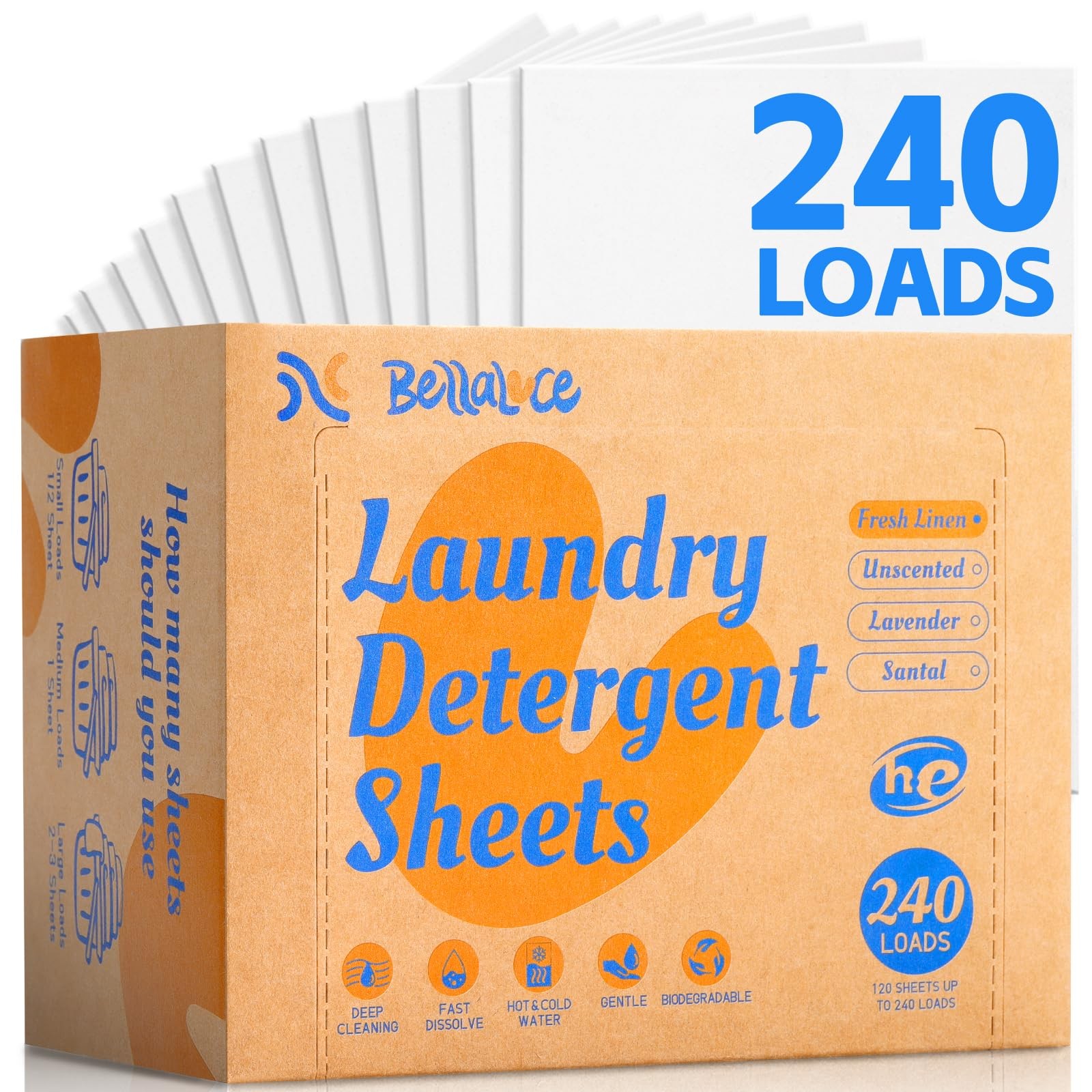 BellaLuce Laundry Detergent Sheets - 240 count (Pack of 1), Orange