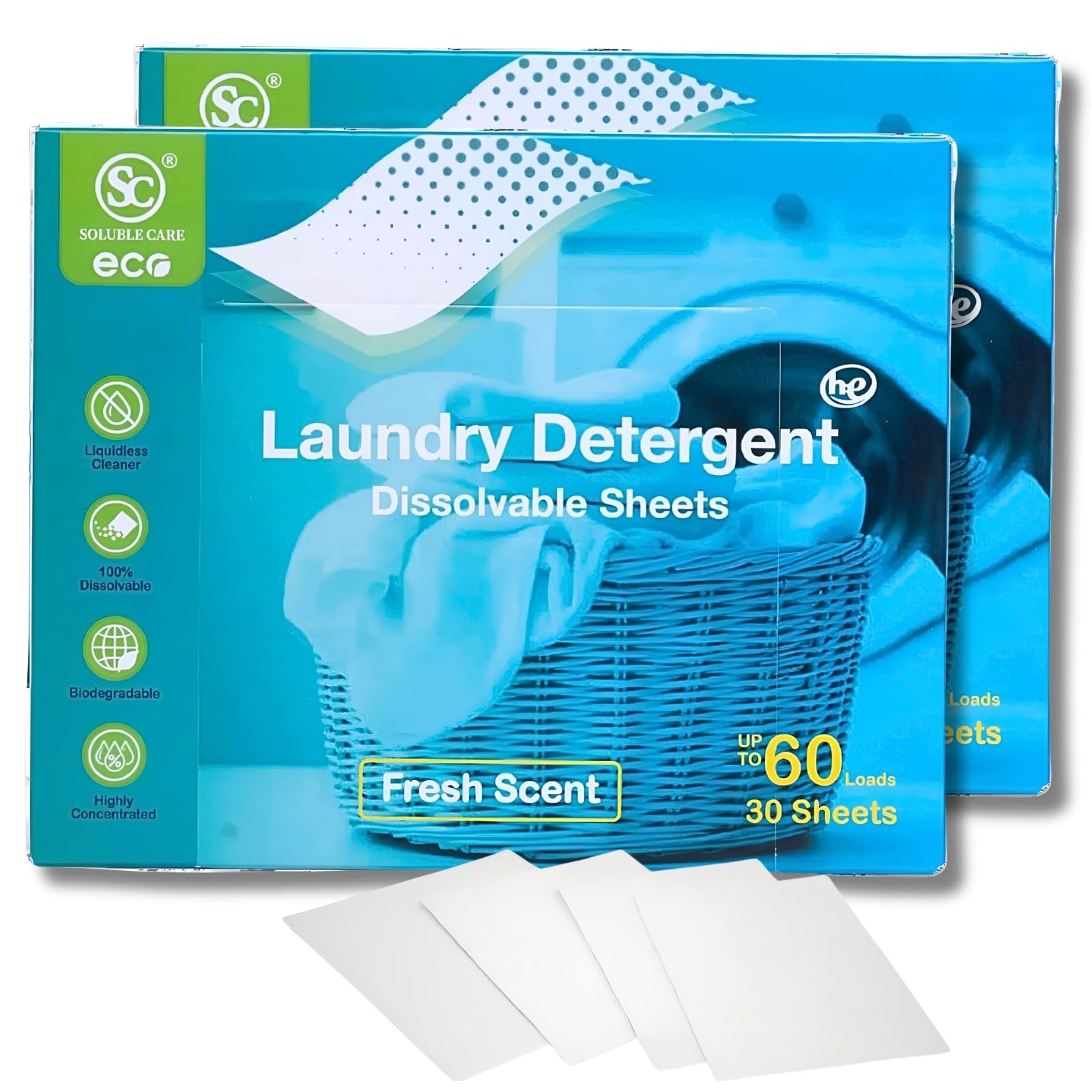 Laundry Detergent Sheets - Eco-Friendly, 60 Sheets, Up 30 count (Pack of 2)