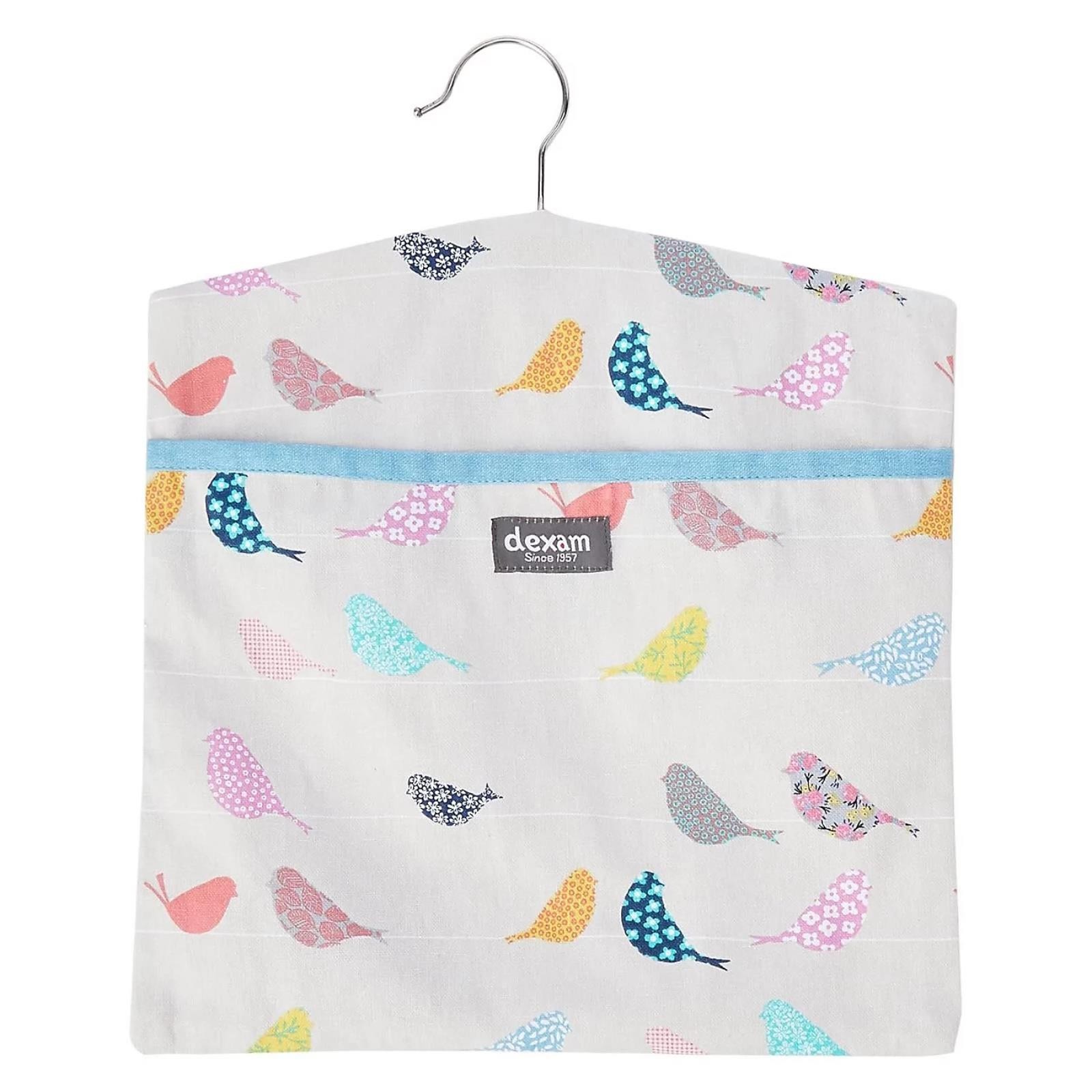 Dexam Cotton Peg Bag Little Bird Hanging Laundry Peg Storage With Hook