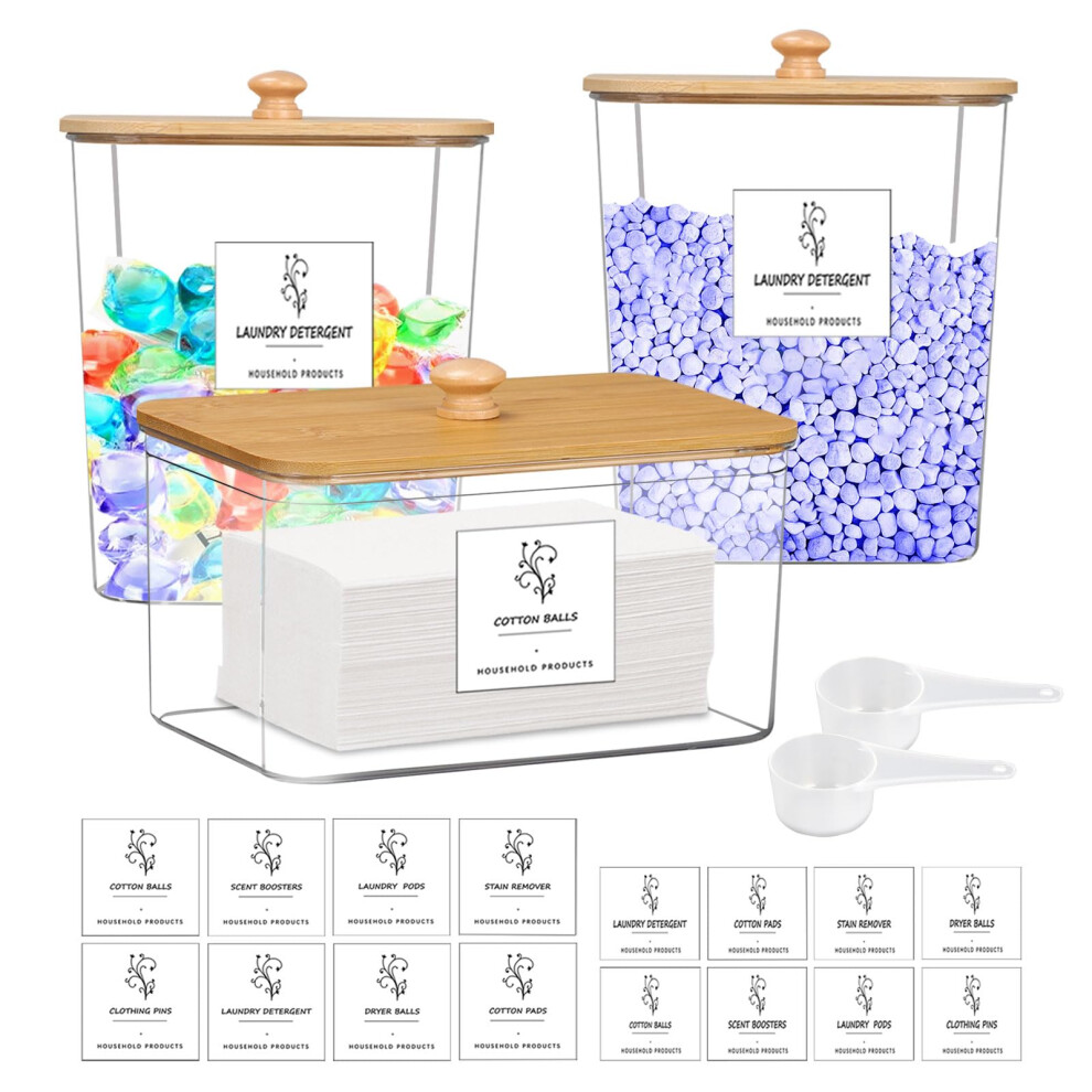 Laundry Detergent Storage,High-Capacity Plastic Washing Powder Storage,Bathroom Laundry Powder Storage With Bamboo Lid,Perfect for Washing Pods,Bath