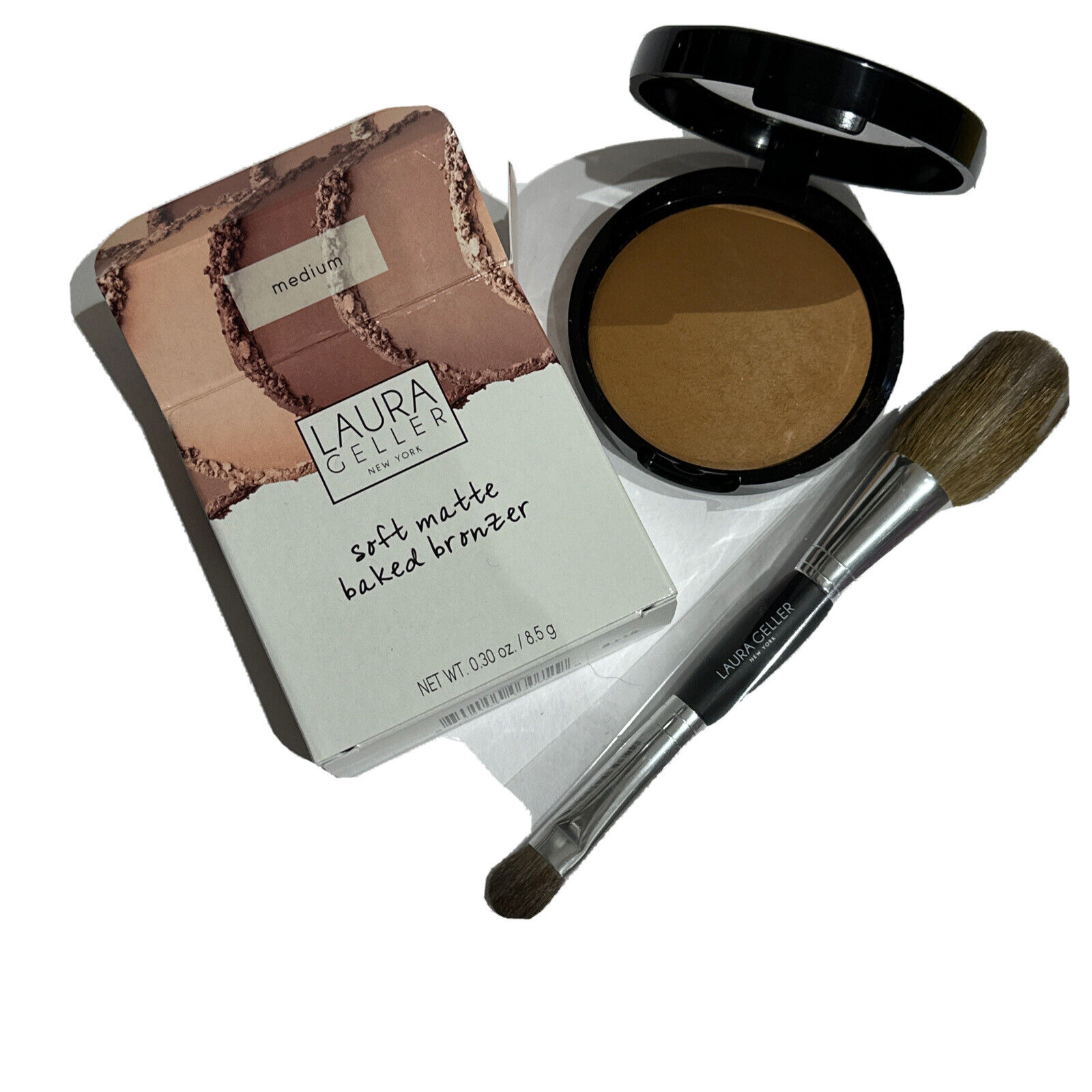 Laura Geller Soft Matte Baked Bronzer in Medium (8.5g) & Powder Brush