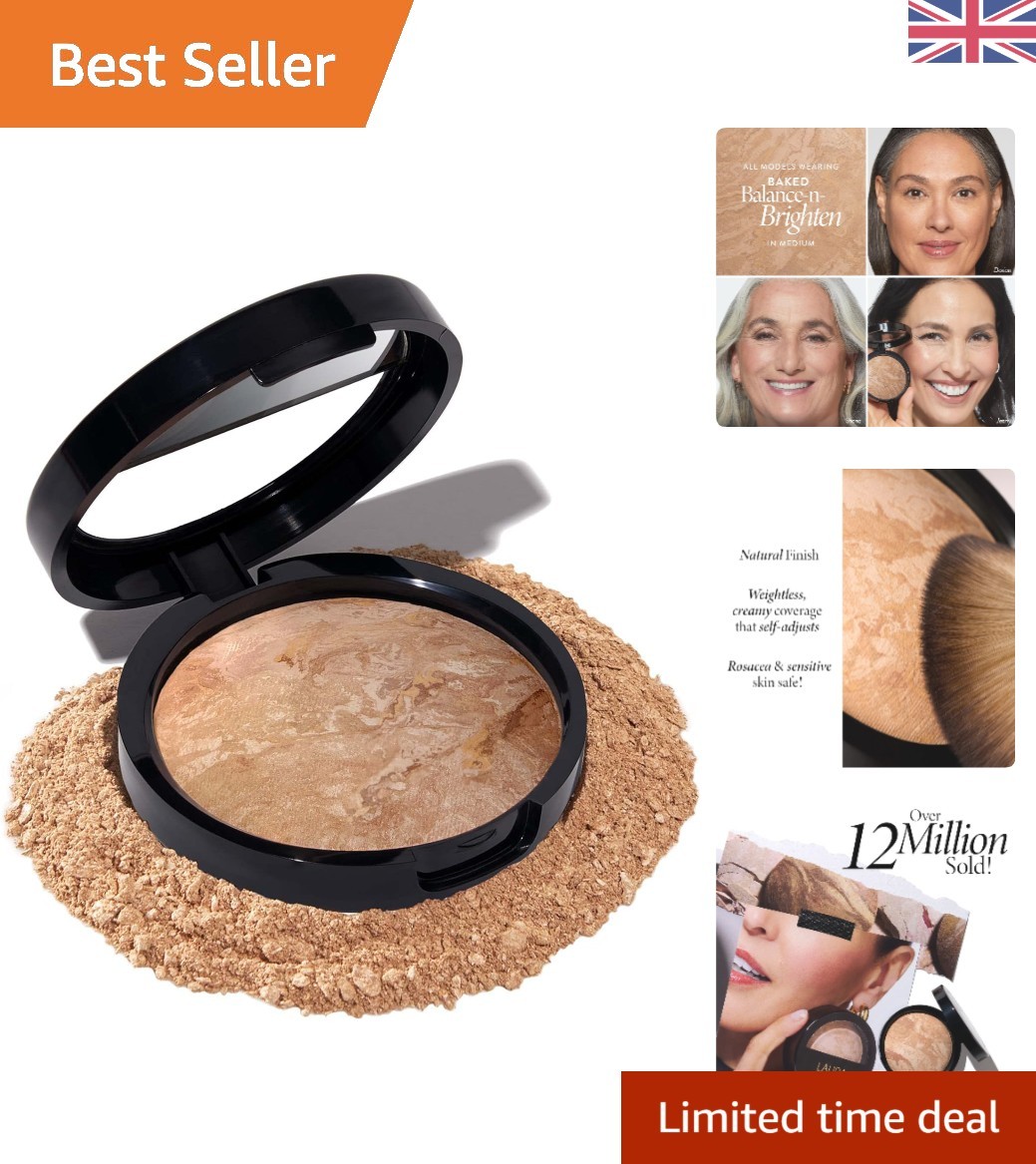 LAURA GELLER Baked Balance-n-Brighten Colour Correcting Powder Foundation (Deep) Buildable Light to Medium Coverage Baked Foundation, Demi-Matte
