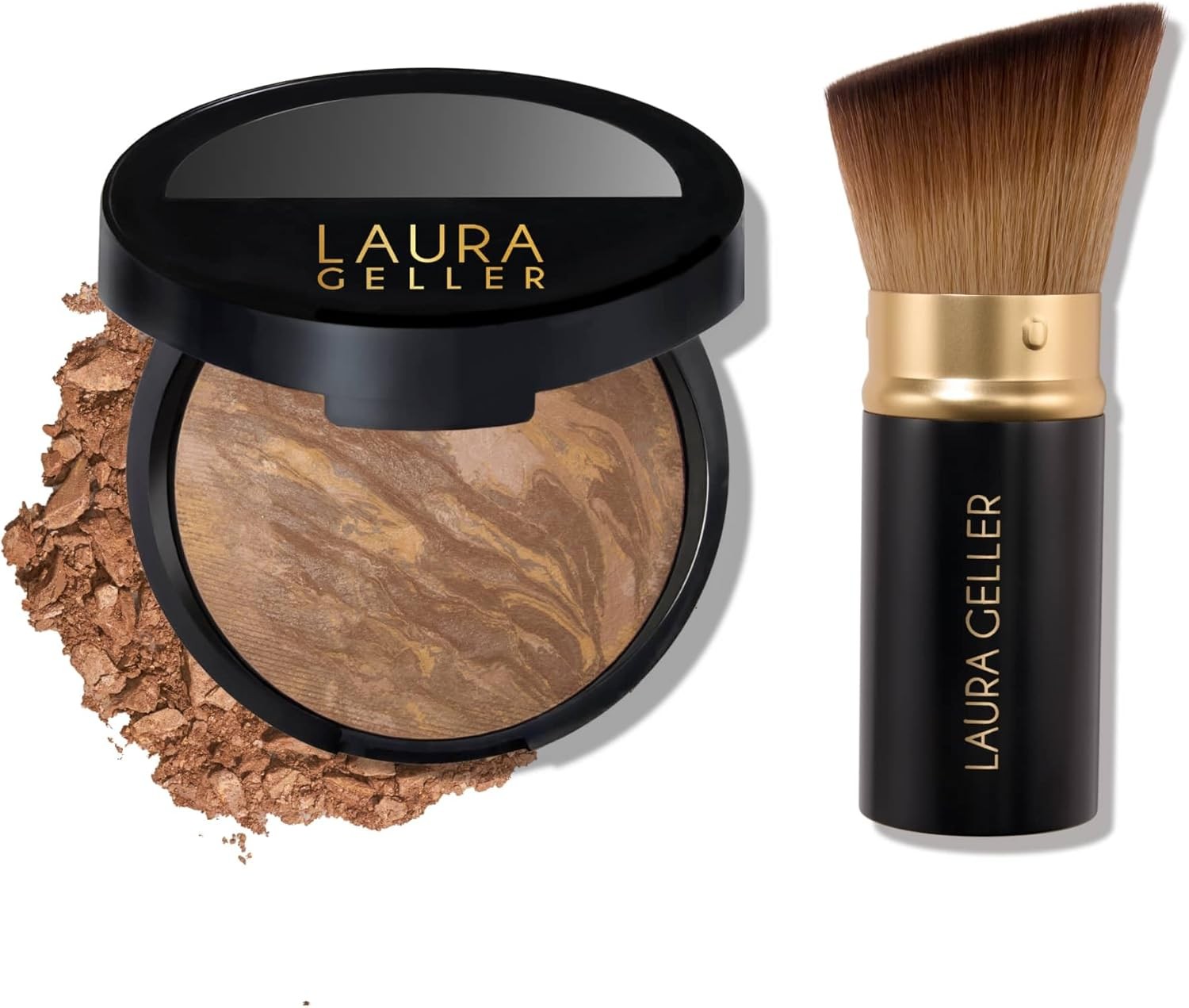 LAURA GELLER NEW YORK Blush-n-Balance 3pc Kit Baked Balance-N-Brighten Color Correcting Foundation Golden Medium + Retractable Kabuki Brush + Baked B