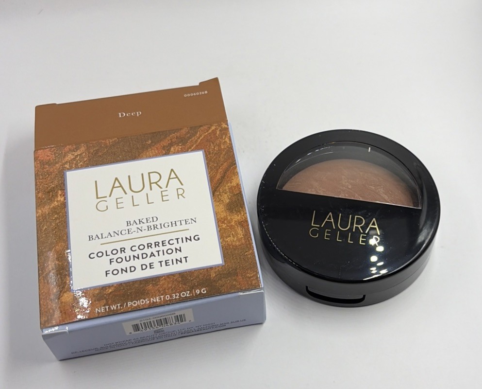 LAURA GELLER Baked Balance-n-Brighten Colour Correcting Powder Foundation (Deep baked to go) Travel Size Buildable Light to Medium Coverage Baked