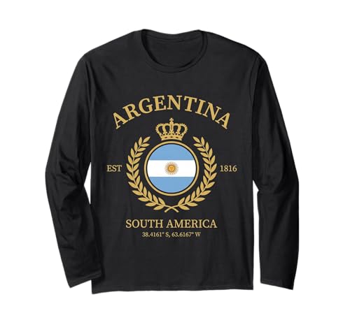 Argentina Vintage Crest with Golden Crown and Laurel Wreath Long Sleeve T-Shirt