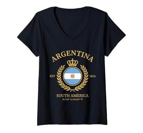 Women's Argentina Vintage Crest with Golden Crown and Laurel Wreath V-Neck T-Shirt