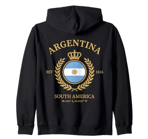 Argentina Vintage Crest With Golden Crown And Laurel Wreath Zip Hoodie