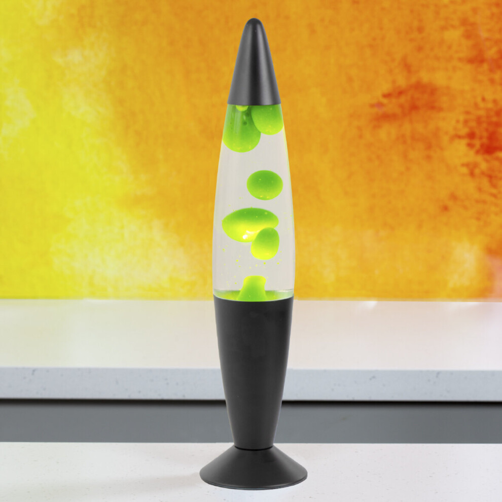 Global Gizmos 48819 Black and Green Lava Lamp/Black Base Colour/Retro Nostalgia/Relaxing Mood Light / 16 Inch Height