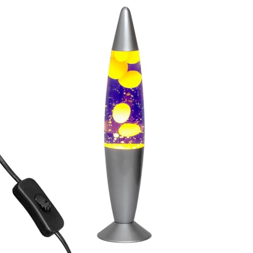 Global Gizmos 48809 Purple and Yellow Lava Lamp/Silver Base Colour/Retro Nostalgia/Relaxing Mood Light / 16 Inch Height
