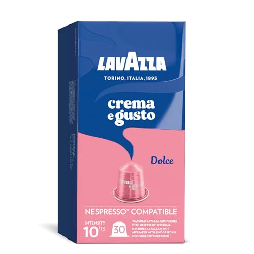 Lavazza, Crema e Gusto Dolce, 30 Aluminium Coffee Capsules Compatible with Nespresso Machines, with Dried Fruit Notes, Arabica and Robusta, Intensity 10, Medium Roasting