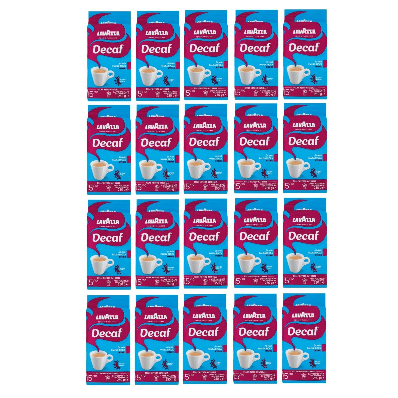 Lavazza Decaf Intenso Ground Coffee 250 Gr. - Box of 20 Pieces