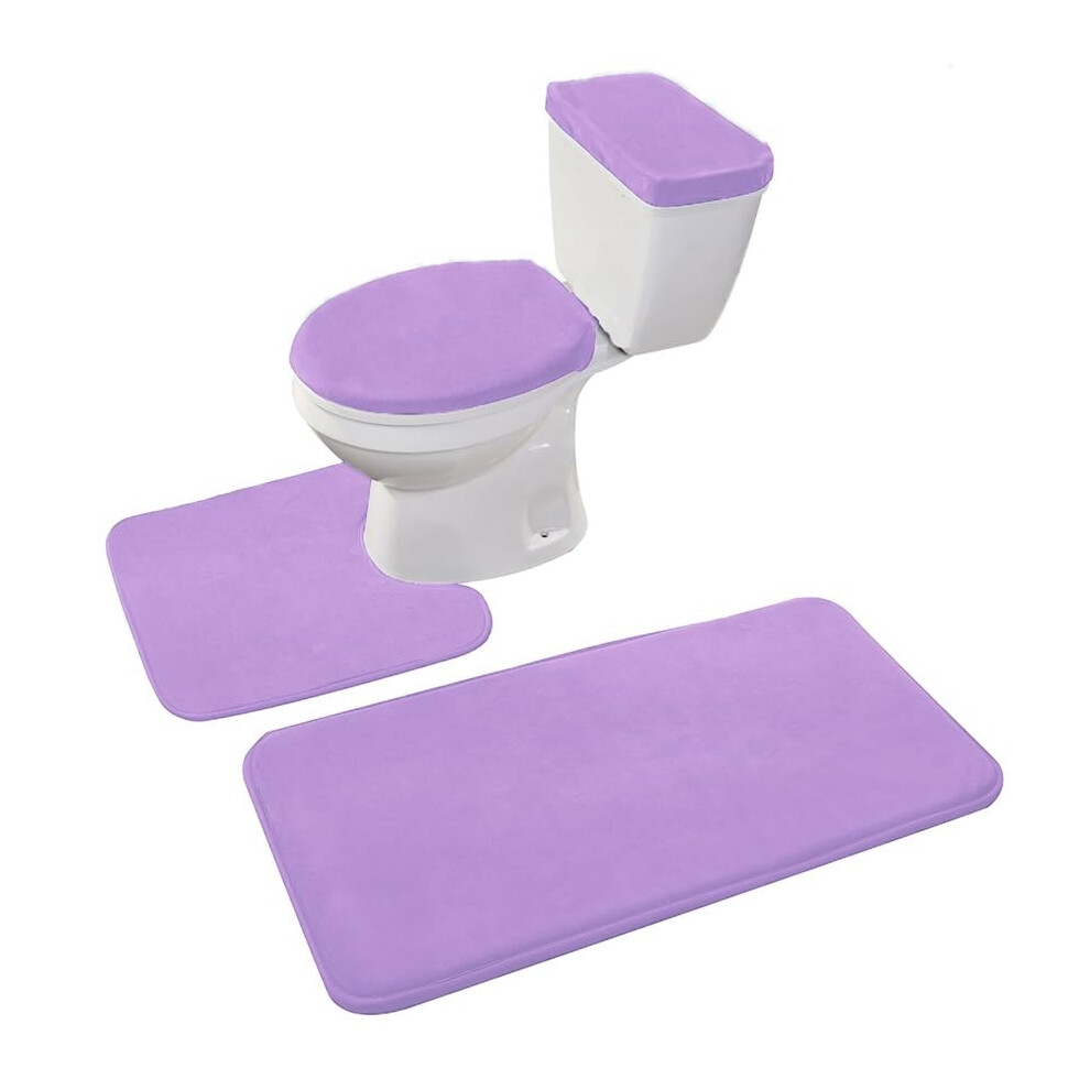 Madeals Memory Foam Bath Mat Set 3 Piece and Toilet Tank Cover Set Combo Bath Mat Set 2 Piece and Toilet Lid and Tank Cover Set Lavender