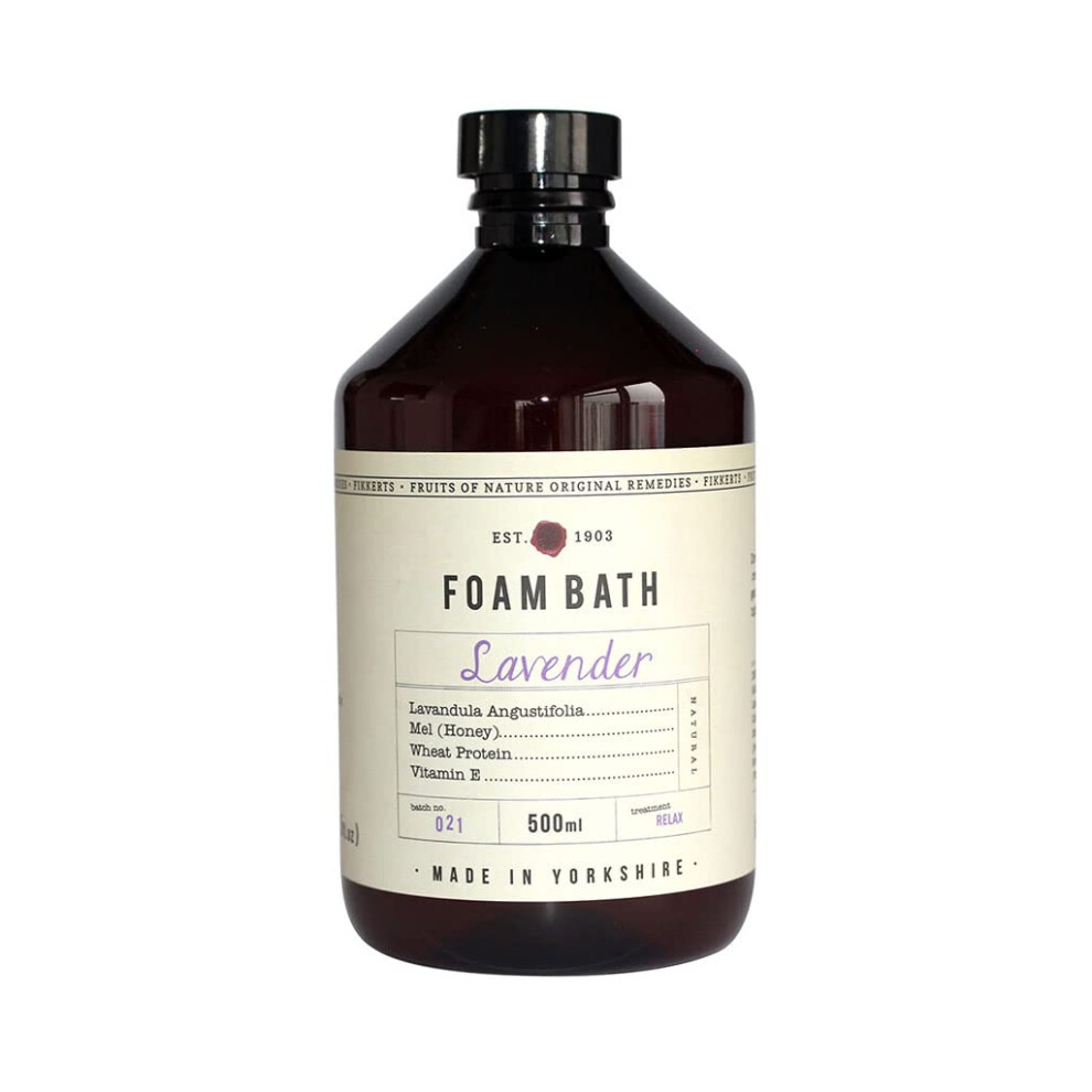 Fikkerts Fruits of Nature Soothing and Relaxing Lavender Foam Bath (500ml) with Bright and Sweet Floral Tones, Vegan Plant-Based