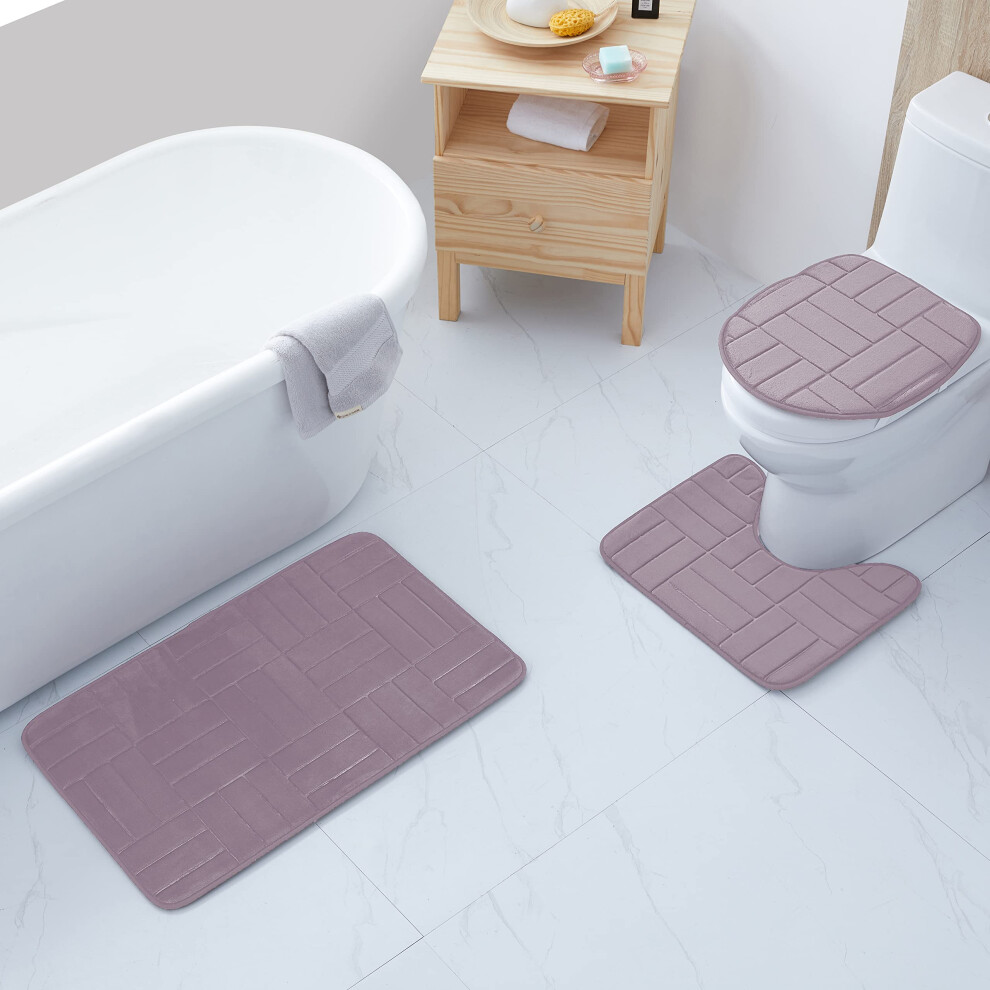 Clara Clark 3 Piece Bath Rugs & Mats Set, Velvet Memory Foam Bath Mats for Bathroom - Non-Slip, PVC Backing, Washable, Dries Quickly, Lavender