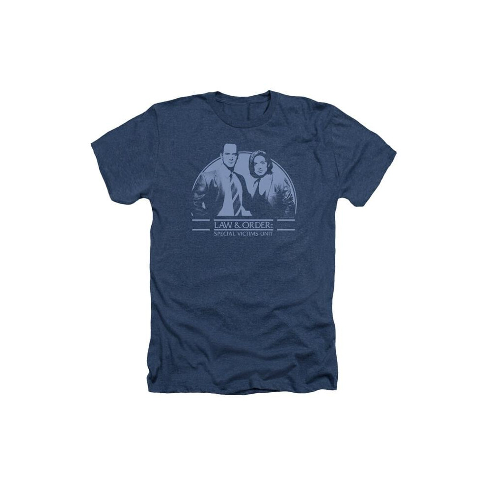Trevco Sportswear NBC238-HA-6 Law & Order Special Victims Unit Elliot & Olivia Adult Regular Fit Heather Short Sleeve T-Shirt, Navy - 3X