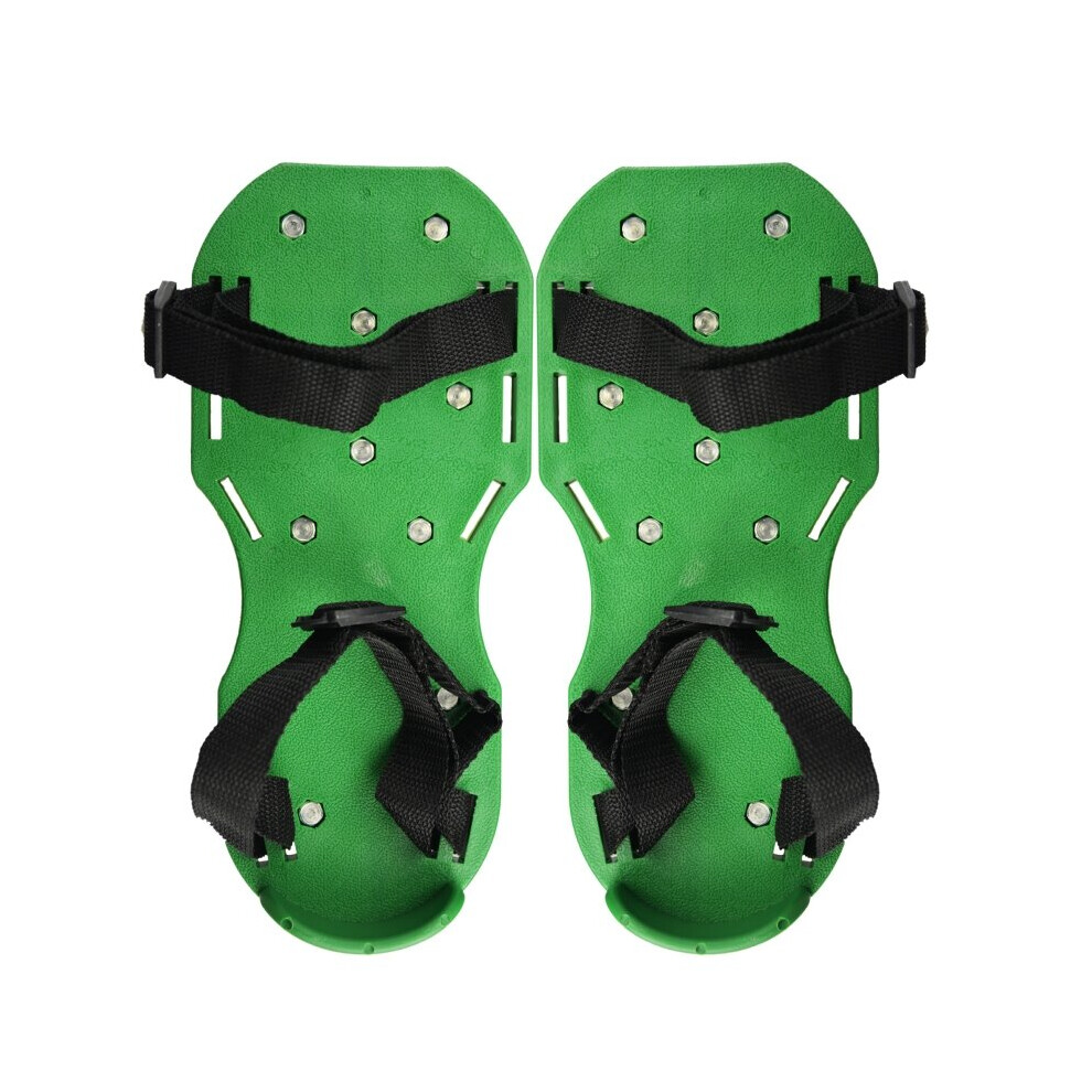 (Green) 1 Pair Lawn Aerator Spikes Shoes Adjustable Straps Garden Lawn Soil Loosening Shoes
