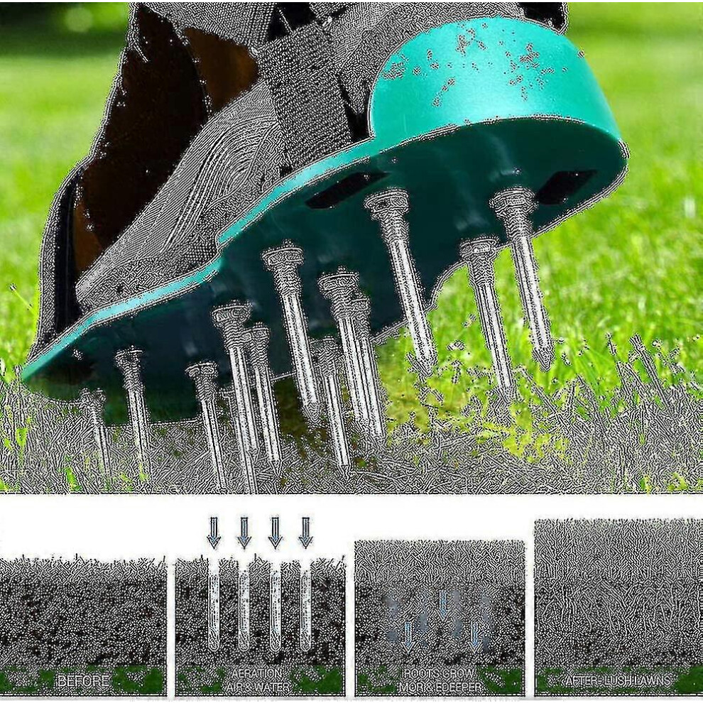 (Green set)TAIMIMEI 1 Pair Lawn Aerator Spikes Shoes Grass Cultivator Shoes Spikes Nail Aerators Yard Garden Tool Soil Scarifiers