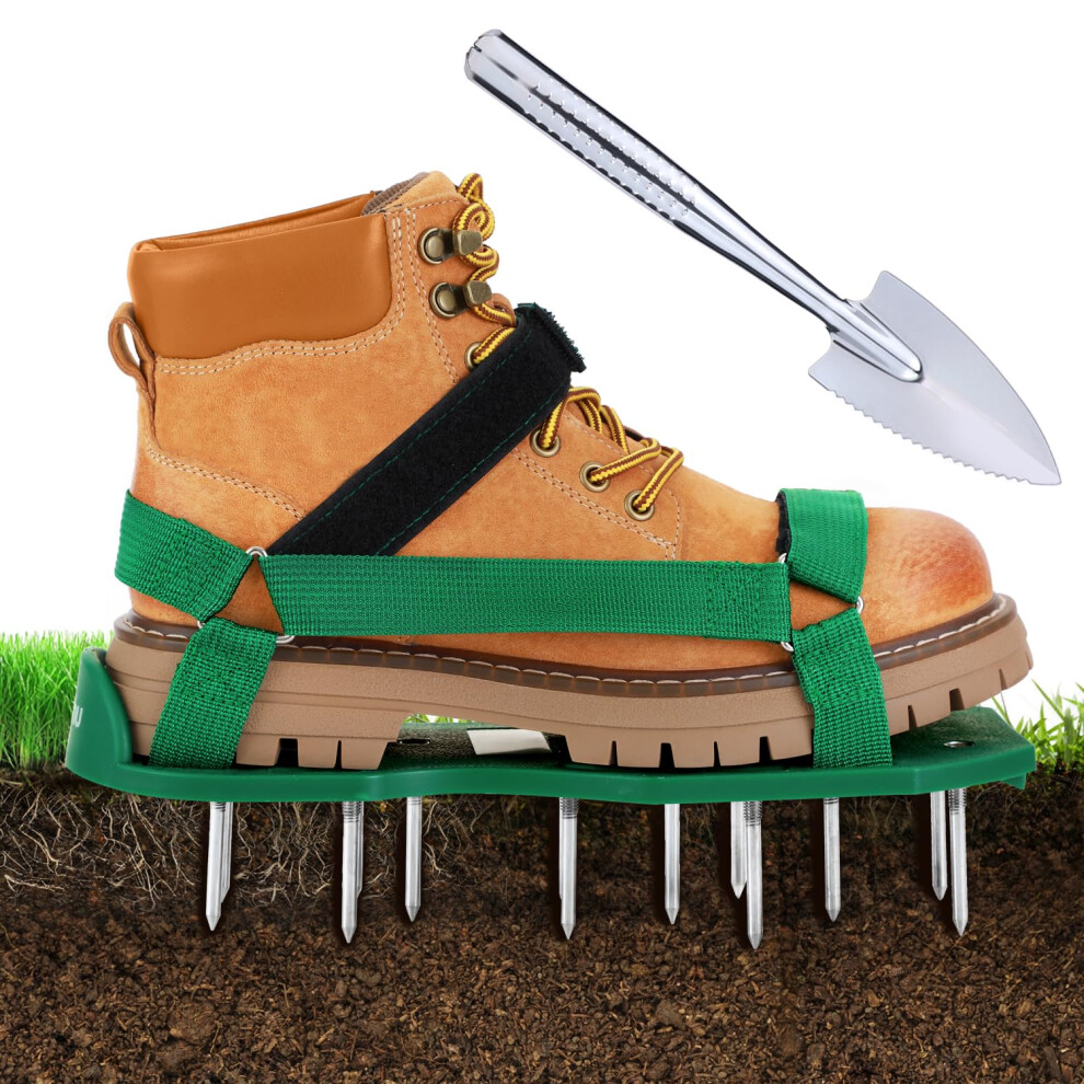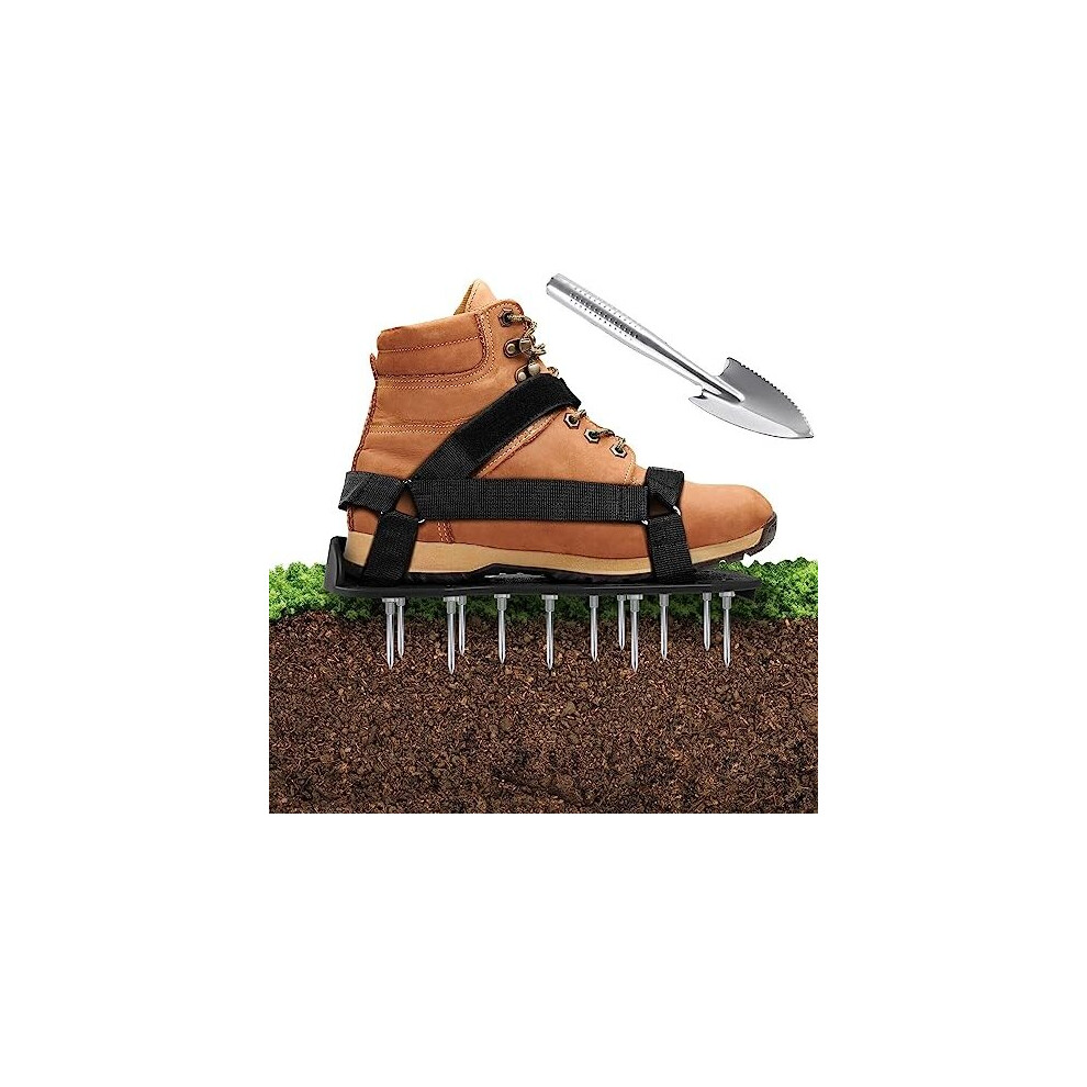 JIANFA Lawn Aerator Shoes, Grass Aerator Shoes with Long 5.7cm Spikes and 30cm Garden Shovel Maual Lawn Aerators for Home Garden and Yards