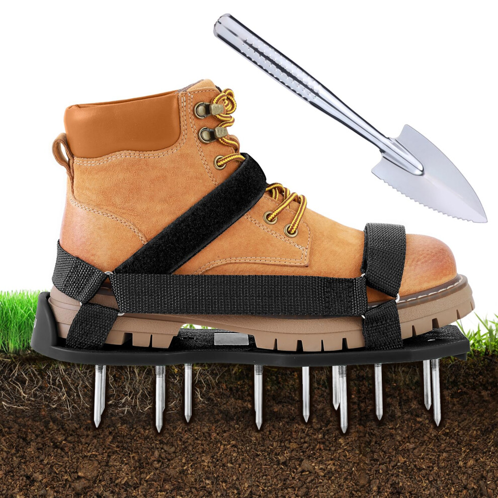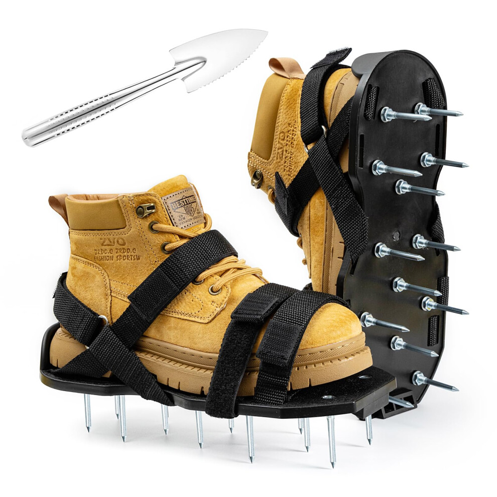 Ohuhu Lawn Aerator Shoes, Metal Spike Sandals for Aerating Lawn with Stainless Steel Shovel, Free-Installation Aerating Shoes with 900D Straps,
