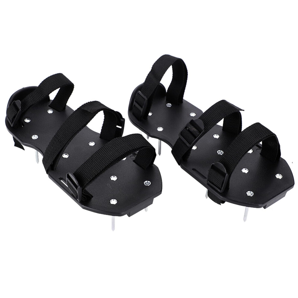 (Black) 1 Pair Lawn Aerator Spikes Shoes Adjustable Straps Garden Lawn Soil Loosening Shoes