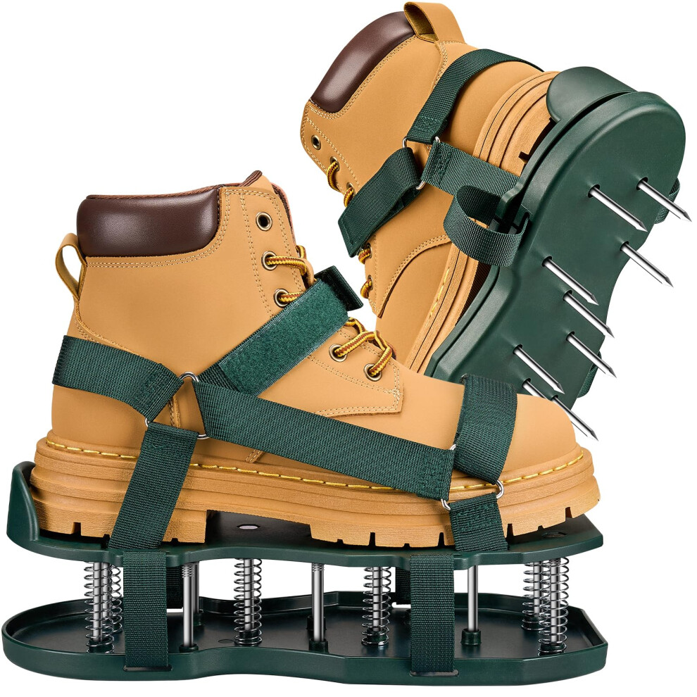 Lawn Aerator Shoes, Adjustable Spiked Sandals with Heavy-Duty Metal Spikes and Secure Straps for Yard Maintenance, Green Black