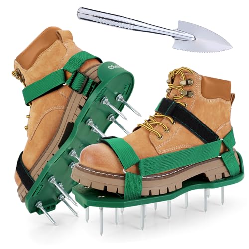 Ohuhu Lawn Aerator Shoes for Glass: Free-Installation Aeration Shoes with Stainless Steel Shovel, Heavy Duty Spike Aerating Sandals Lawn Equipment Tool with Hook & Loop Straps for Yard Patio Garden