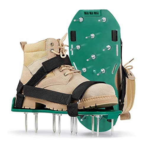 Newthinking Lawn Aerator Shoes, Heavy Duty Spiked Aerating Sandals, Garden Grass Aerator Spiked Sandals with Hook & Loop Straps, All-New Unique Design Easy installation