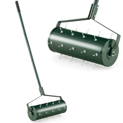 REMI TOOLS LTD Lawn Aerator Heavy-Duty Rolling Outdoor Garden Manual Grass Seed Roller Spikes with Gardening Tool Grass Soil Compact Style Garden Grass Patio Yard