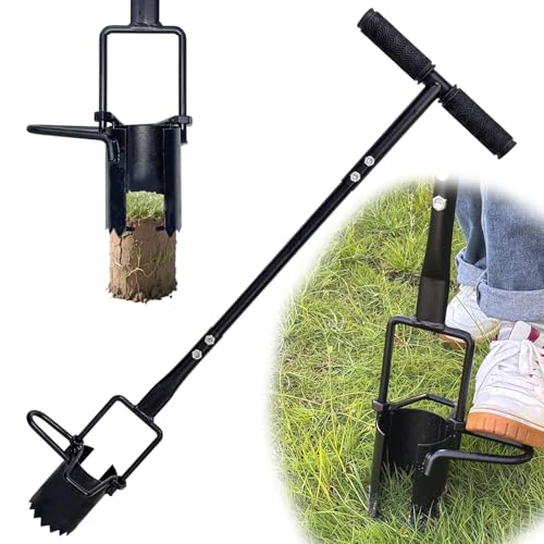 Carbon Steel Bulb Planter Tool Long Handle,Soil Sampler Lawn Aerator,Serrated Base Gardening Bulb Transplanter with Soft Grip,Heavy Duty Sod Plugger for Digging Holes to Plant Daffodils,Tulips, Iris