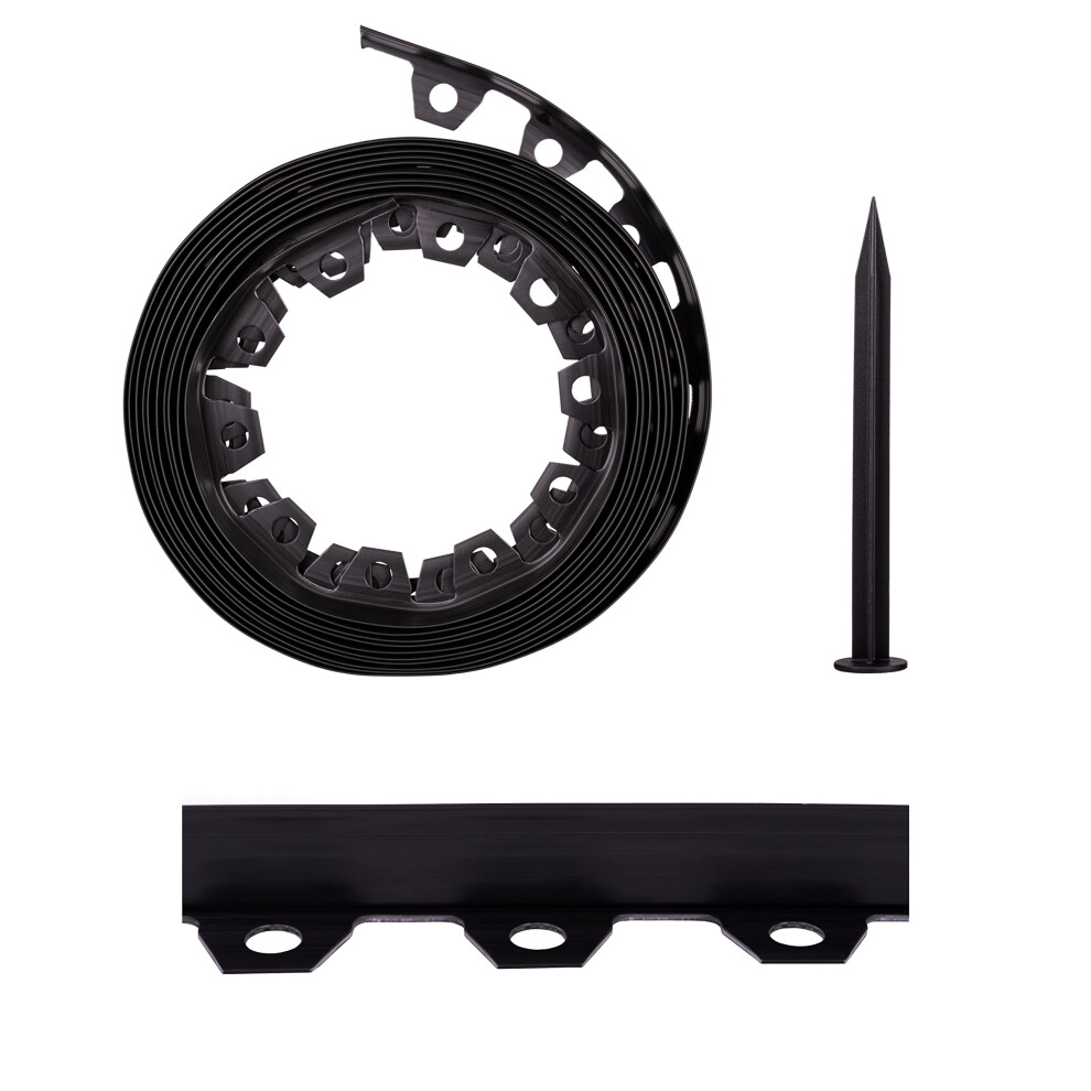KB Tools 10-100 metres of BLACK Flexible Plastic GARDEN EDGING with STRONG Securing Pegs/Anchors, Lawn Borders, Flexible Lawn Edging, Plastic Grass