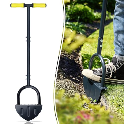 Jazooli Garden Tools | Carbon Steel Lawn Edging Border Cutter & Garden Edging Grass Cutter | Half Moon Lawn Edger & Edge Trimmer with Head Step | T Handle 91cm