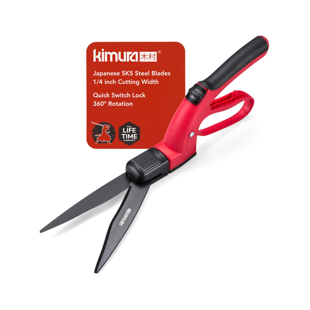 Kimura? Pro Grass Shears - Premium Lawn Shears with 360? Rotating Head, Japanese SK5 Steel Blades, Lightweight, Ergonomic TPR Coated Handles, Ideal
