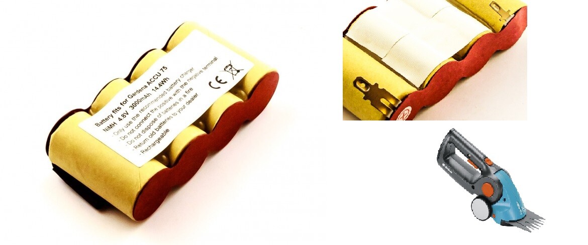 Avizar Gardena ACCU 75 Ni MH 4.8V 3000mAh 14.4Wh Lawn Shears Battery, Beige