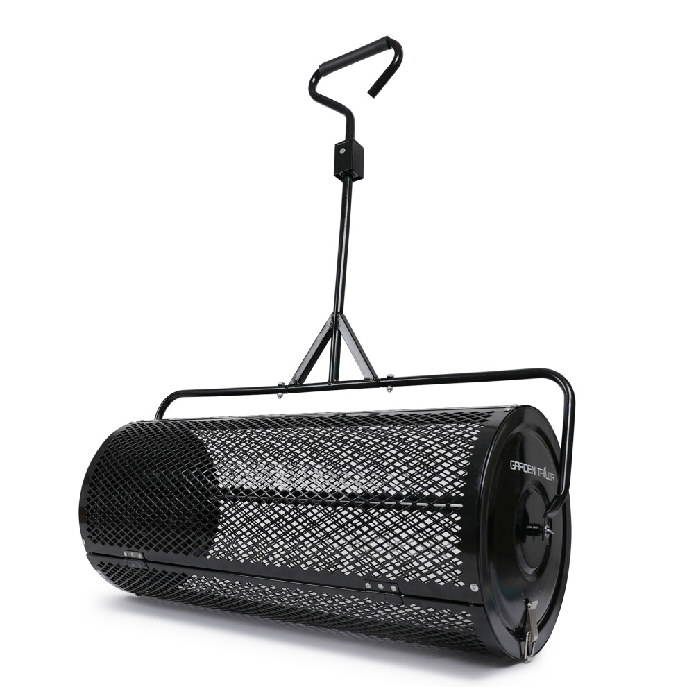 GiantexUK 27’’ Compost Spreader, Peat Moss Seeding Manure Fertiliser Garden Roller with U-shaped Handle & Side Clasps, Heavy Duty Metal Mesh Basket Top Dresser Lawn Spreader, 76L (Black)