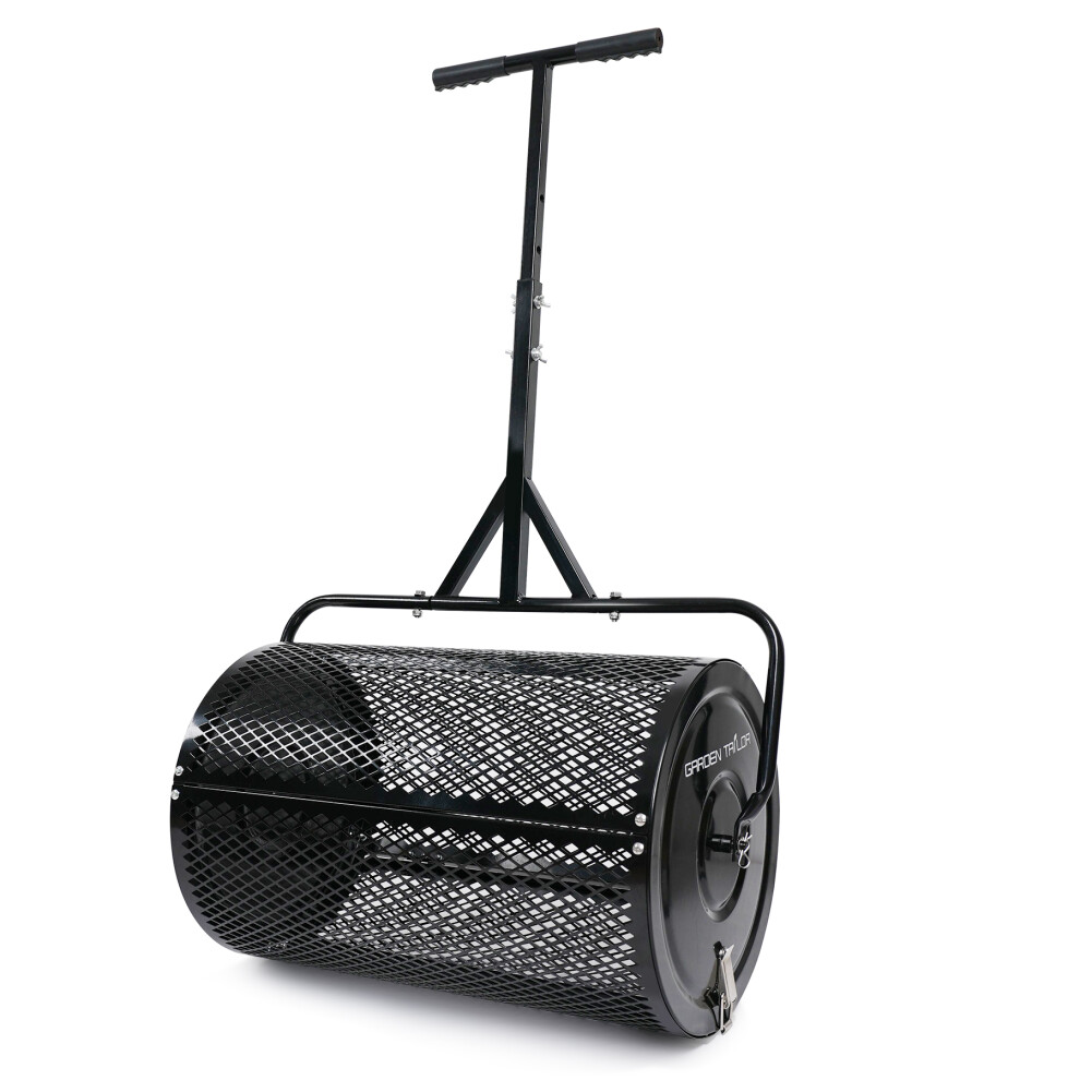 Garden Tailor Compost Spreader Peat Moss Roller: 24 in Lawn Spreader with Installation Support Accessories 3 Heights Adjustable for Garden Top Soil, Manure, Mulch, Top Dressing